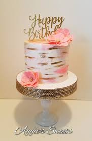 pink gold birthday 1 Tier - pink, gold theme with Happy Birthday topper and pink flowers