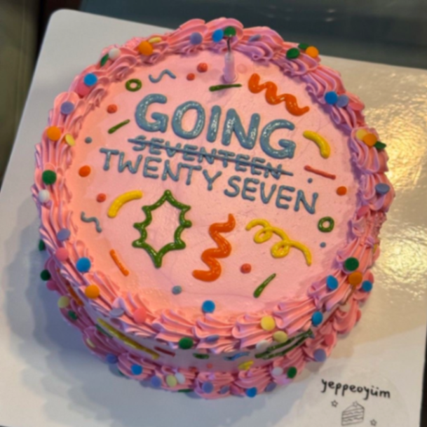 Pink Minimalist Birthday Cake | Custom 27th Birthday Design Cake Design