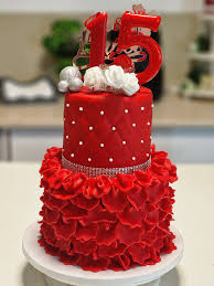 Red 15th Birthday Cake | Custom 2-Tier Ruffle Design Cake Design