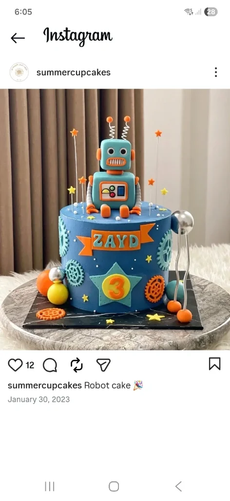 Robot Birthday Cake | Custom 1-Tier Fondant Design Cake Design