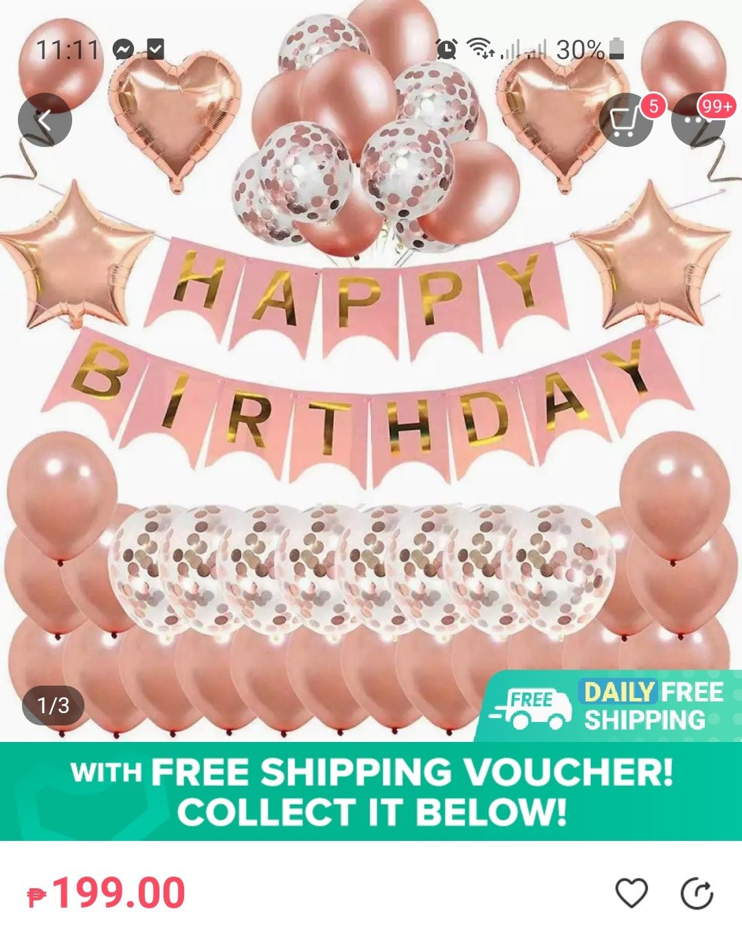 Rose gold and pink birthday decoration set featuring balloons, star and heart foils, and a pink 'Happy Birthday' banner with gold lettering.