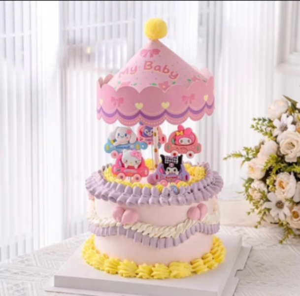 Sanrio Carousel Birthday Cake | Custom 1-Tier Design Cake Design