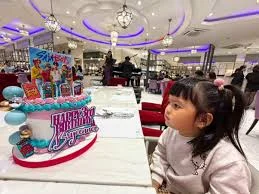 Pink and blue K-pop themed birthday cake with SB19 character printouts and a large Happy Birthday message.