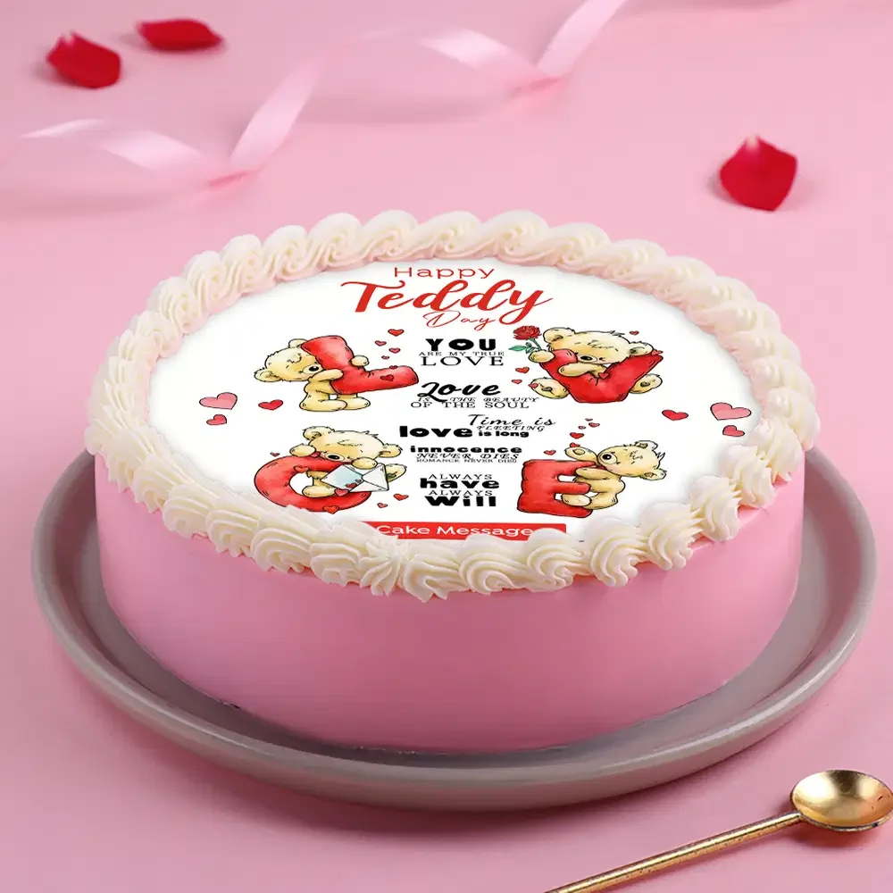 Teddy Day Romantic Birthday Cake | Custom 1-Tier Cake Design