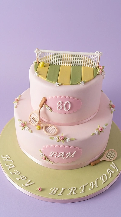 Tennis Themed 80th Birthday Cake | Custom 2-Tier Design Cake Design