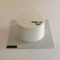 Minimalist white bento cake with black piped icing text reading happy yz day on a silver square board.